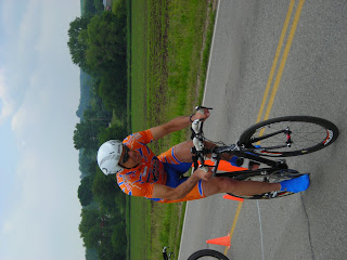 Jarod Berger of Ciclismo powered his way to an impressive victory in the State Time Trial Championships on the 23.25 mile course in Yutan Saturday. Berger's exceptional time of 49:57 (27.92 mph) bested his closest rival in the Mens 1/2/3, Cody McCullough of Powerade/IF by a minute and 45 seconds. Third place went to Justin Maresh of Team Kaos, with a time just 10 seconds slower than McCullough. Morgan Chaffin won the women's 1/2/3 in a time of 58:23, with Jana Vavra finishing second in 1:04:43. In the Men's Category 4, a tight race saw Lucas Marshall win with a time of 54:22, with Ashton Lambie of Kaos 19 seconds behind him, and Pete Duryea of host club Velo Veloce 26 seconds in arrears of Marshall. Brady Murphy of Midwest Cycling Community won the Men's Category 5 by 6 minutes in a time of 55:24, while Kim Carveth of Ciao Baby won the Women's Category 4 by almost 5 minutes in 1:04:18.